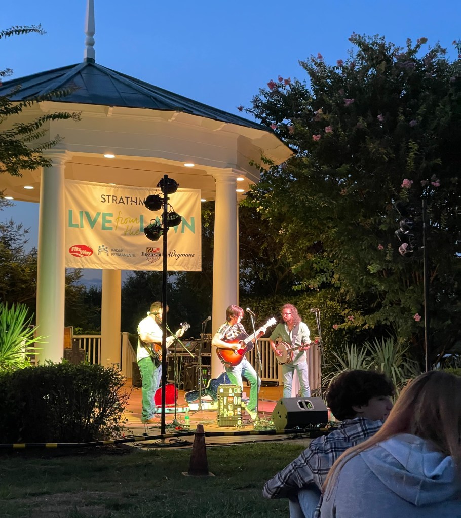 On August 21st, we enjoyed an evening Strathmore Live from the Lawn concert featuring Liam Purcell & Cane Mill Road. Sitting near the gazebo and munching on a delicious picnic with our friends Bob and Judy, we had a close-up look at Purcell, a hot young flatpicker from Deep Gap, NC, the home of musical legend Doc Watson and the birthplace of bluegrass flatpicking guitar.