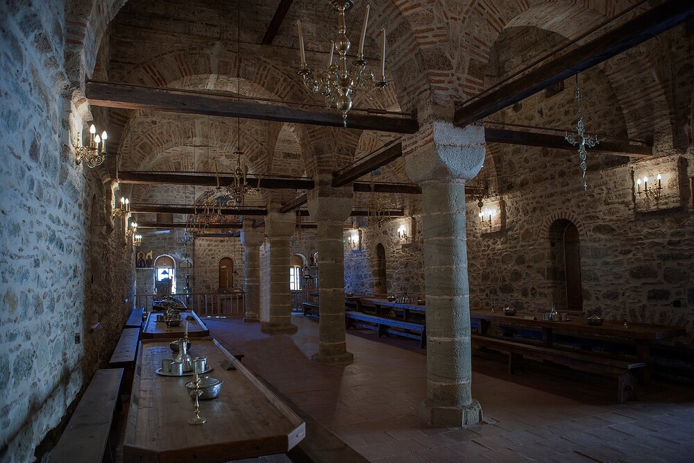 The monastery is a unique creation, integrating monastic values within a fortified enclosure, which has evolved in response to changing political and economic circumstances for over 900 years. It has the external appearance of a castle, with towers and crenellations. It is also home to a remarkable collection of manuscripts, icons, and liturgical artwork and objects.