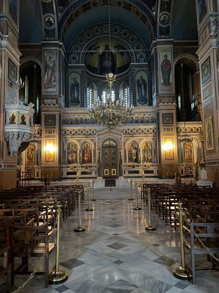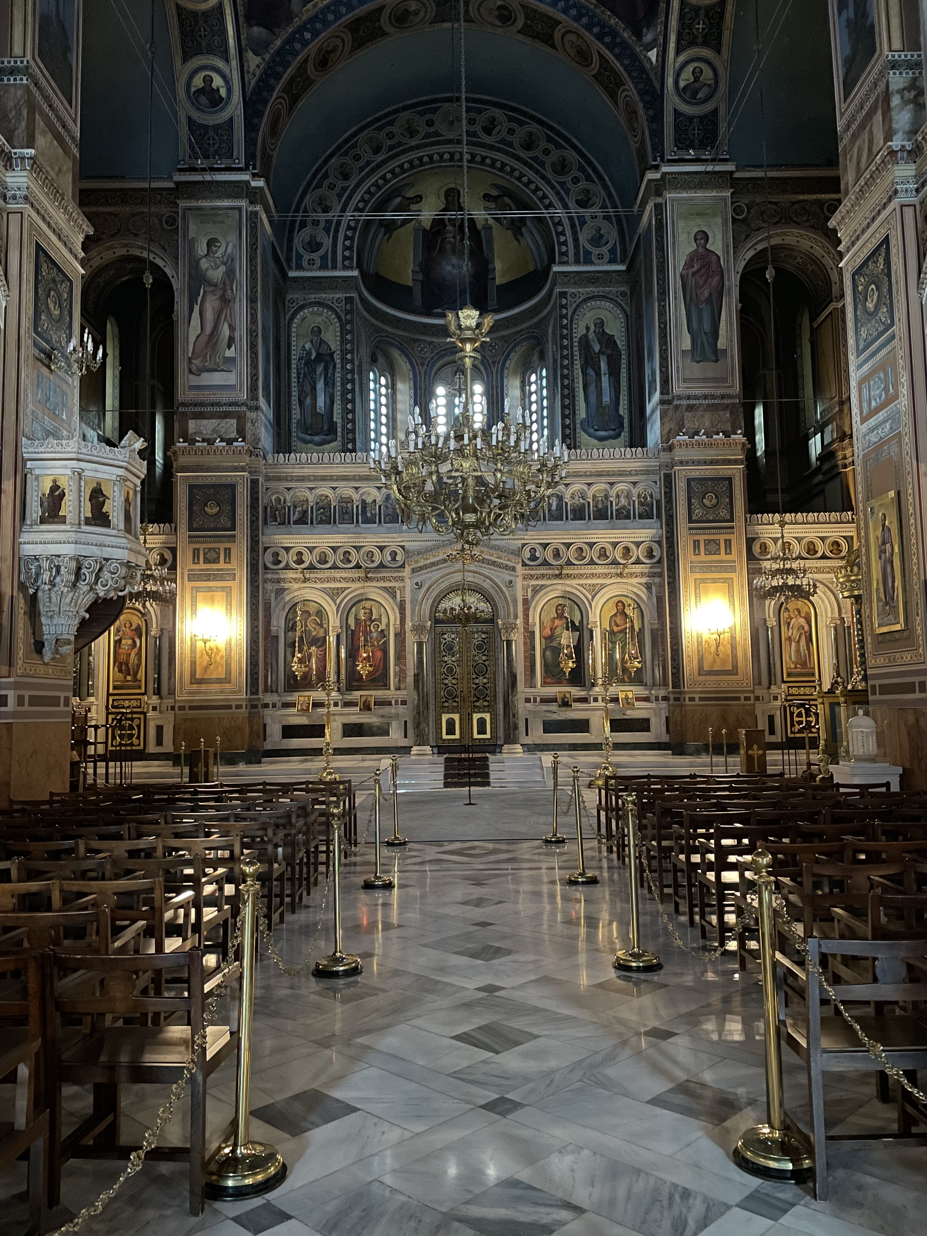 Interior of the Metropolitan Cathedral of the Annunciation, popularly known as the Metropolis or Mitropoli, the cathedral church of the Greek Orthodox Archbishopric of Athens and all of Greece