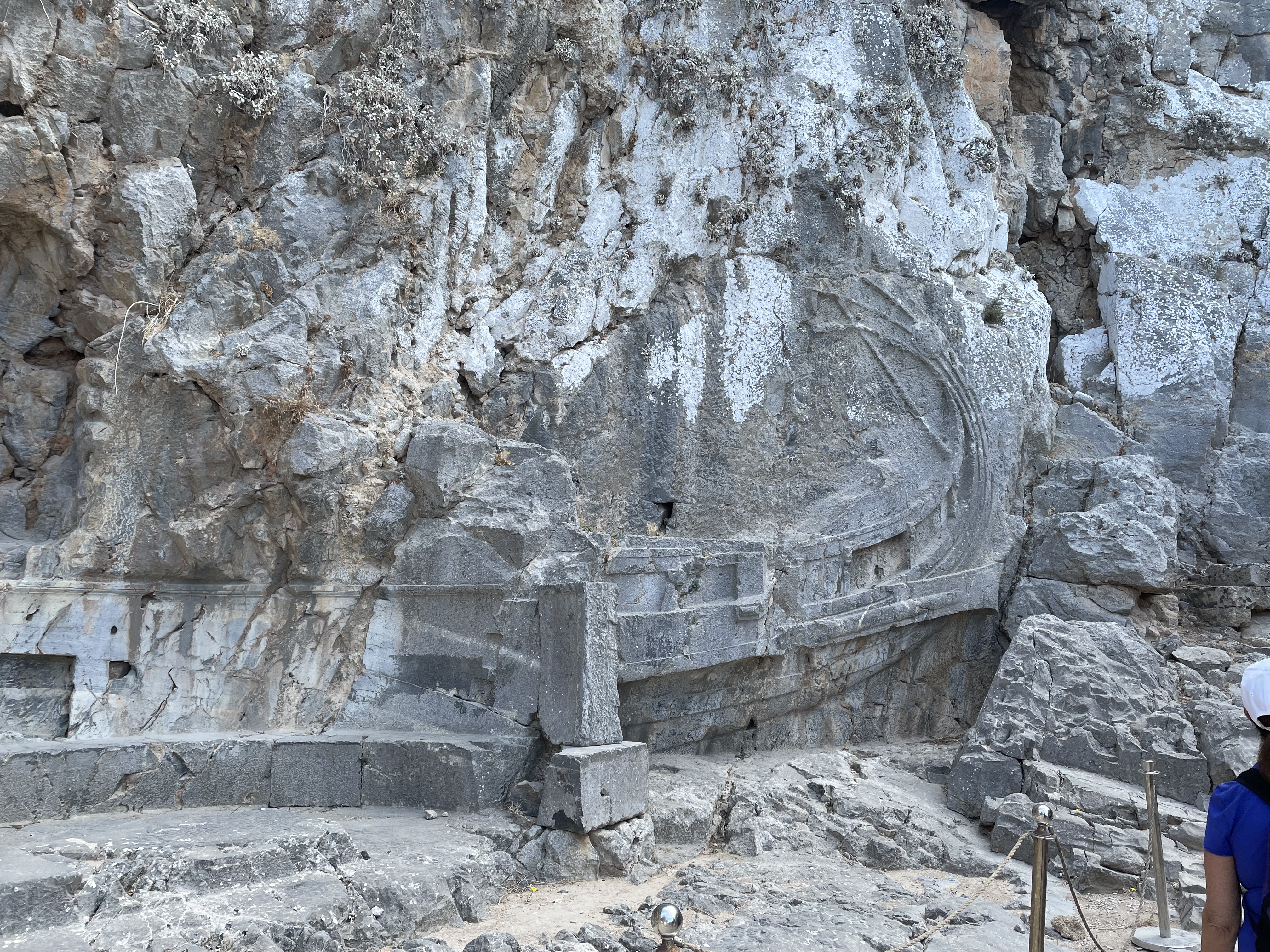 Carving of an ancient ship in the cliffside on the pathway to the Acropolis