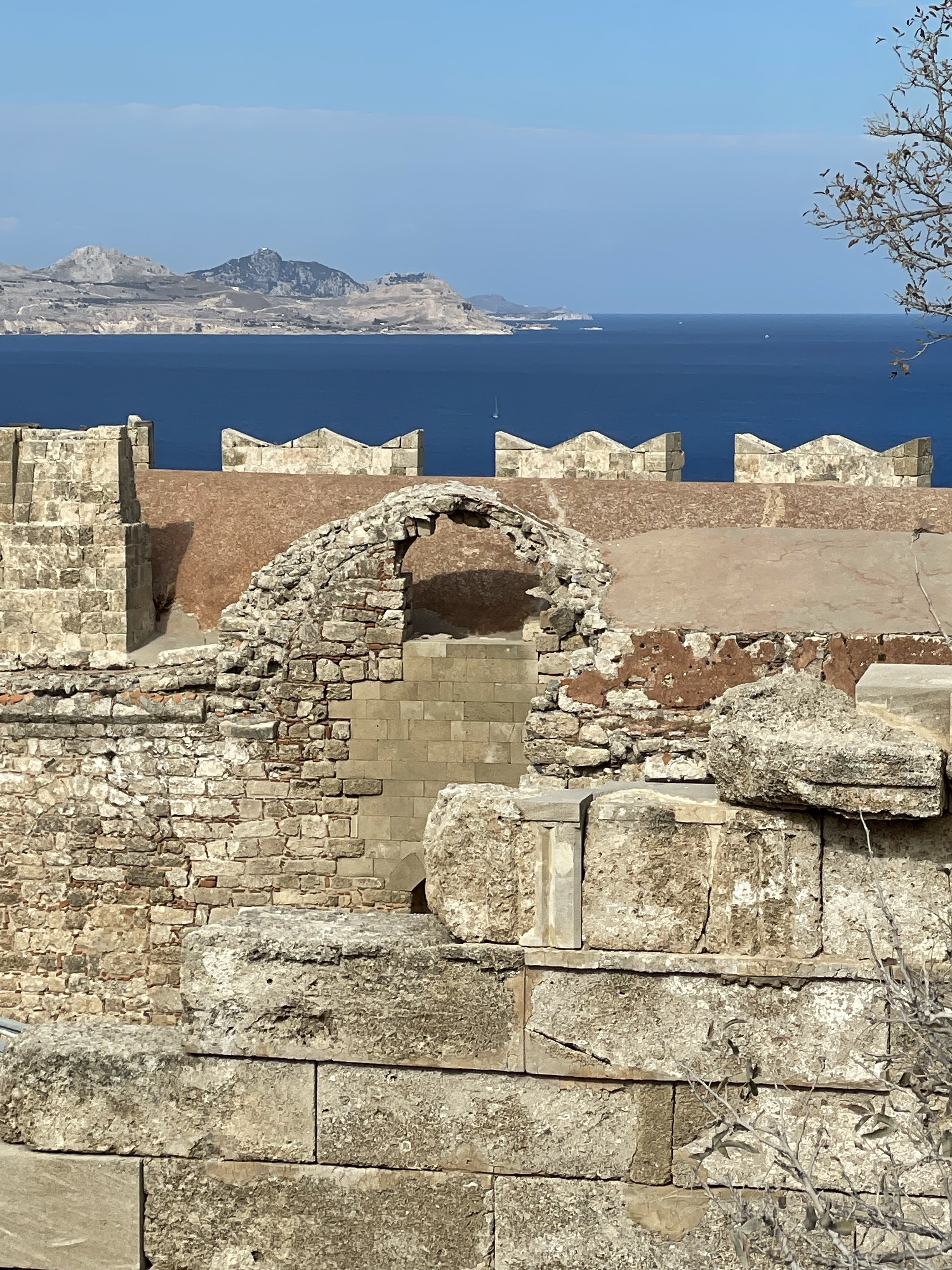 Nearing the fortifications of the Lindos Acropolis