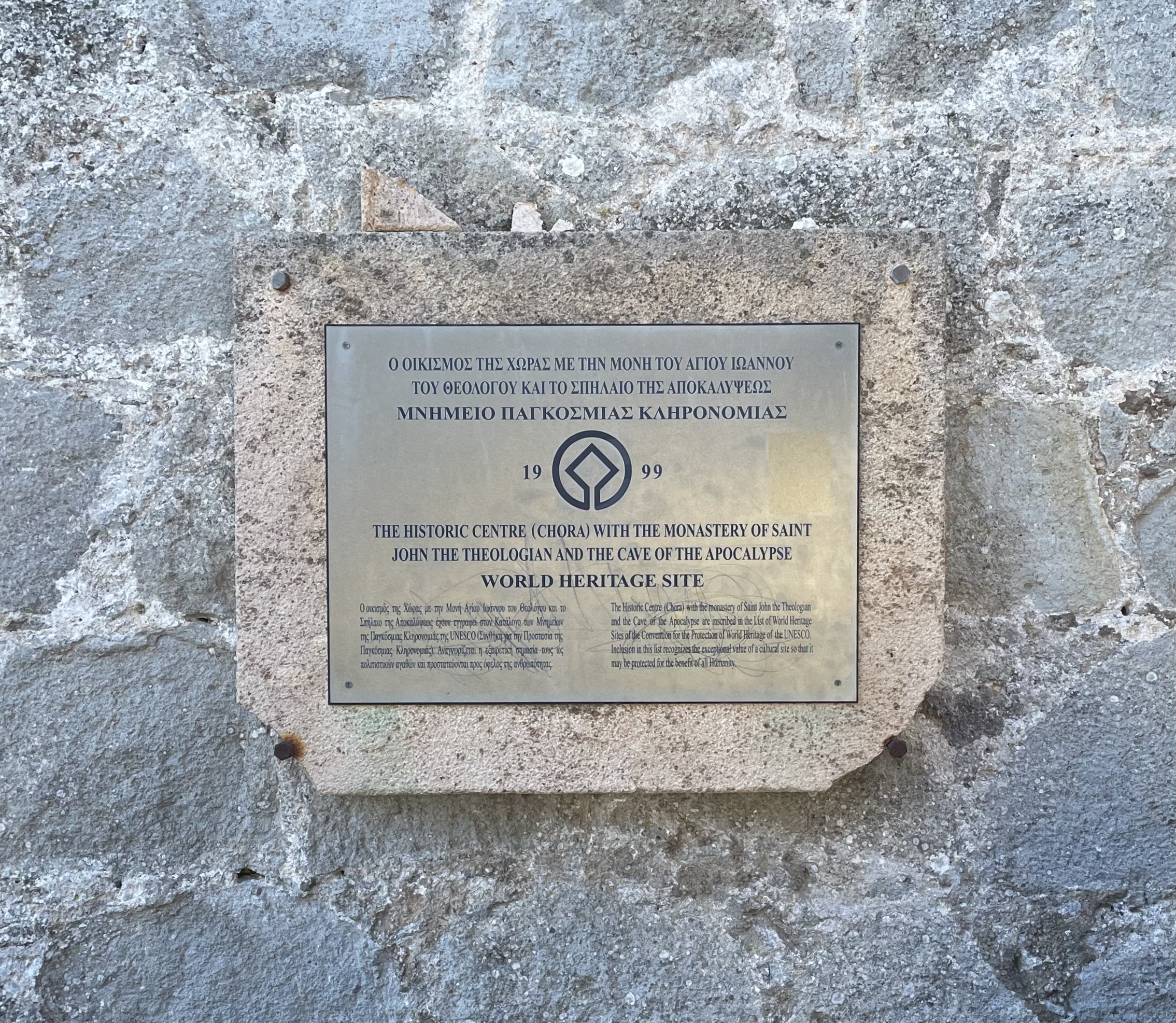 The UNESCO plaque designating Patmos a World Heritage Site