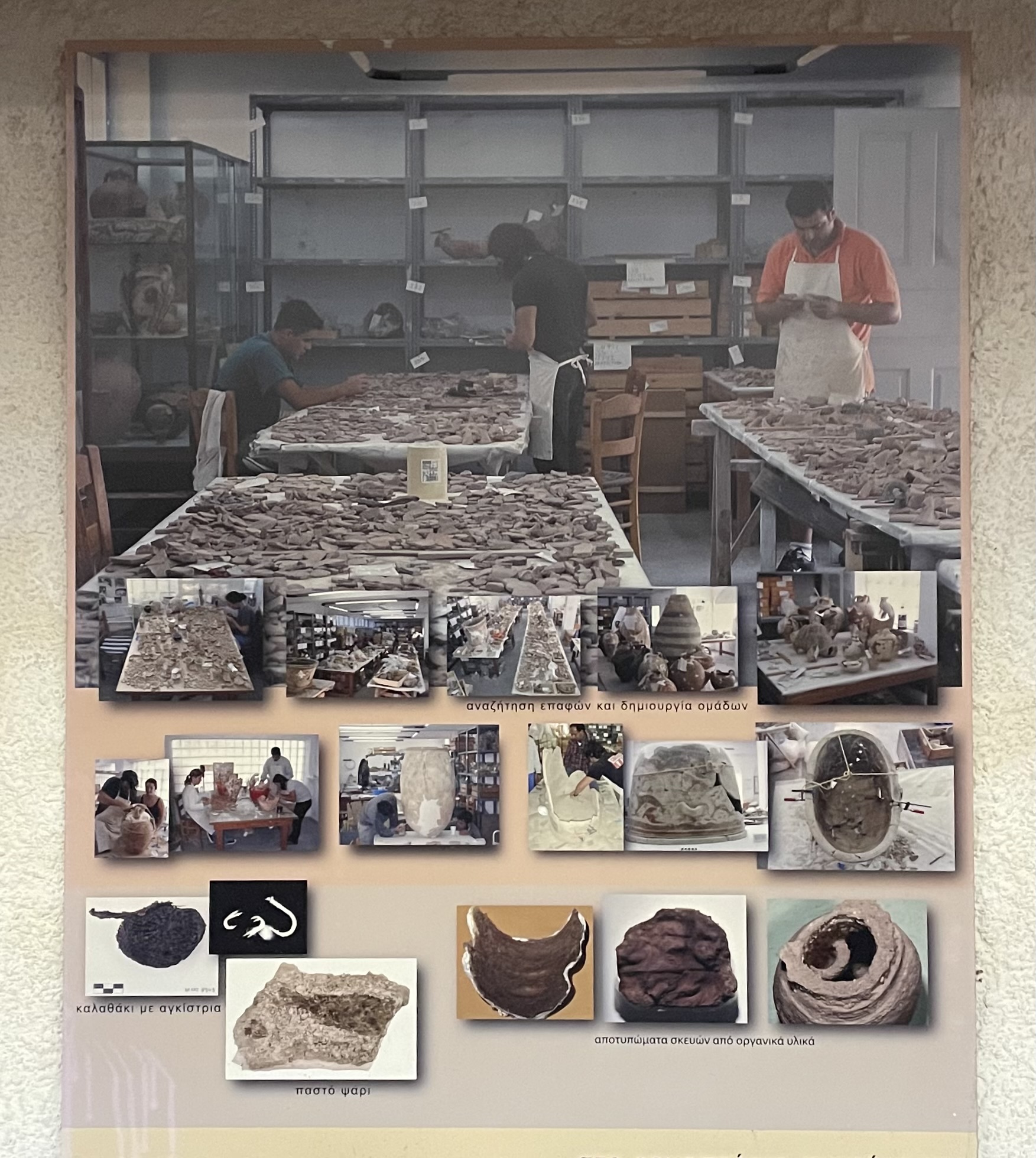 Photos of the archaeological lab work at Akrotiri