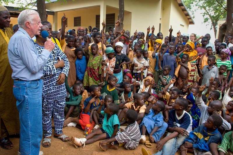 Carter noted that ‘this disease [Guinea worm] is not eliminated with medicine. It’s eliminated…by neighbors talking to neighbors about how to collect water in the poorest and most marginalized villages in the world. And those neighbors truly were my grandfather’s partners for the past forty years [and have] demonstrated their own power to change their world.’ When Jimmy Carter ‘saw a tiny 600-person village that everybody else thinks of as poor, he recognized it. That’s where he was from. That’s who he was.’ He saw it as ‘a place to find partnership and power and a place to carry out that commandment to love your neighbor as yourself. Essentially, he eradicated a disease with love and respect. He waged peace with love and respect. He led this nation with love and respect.’”