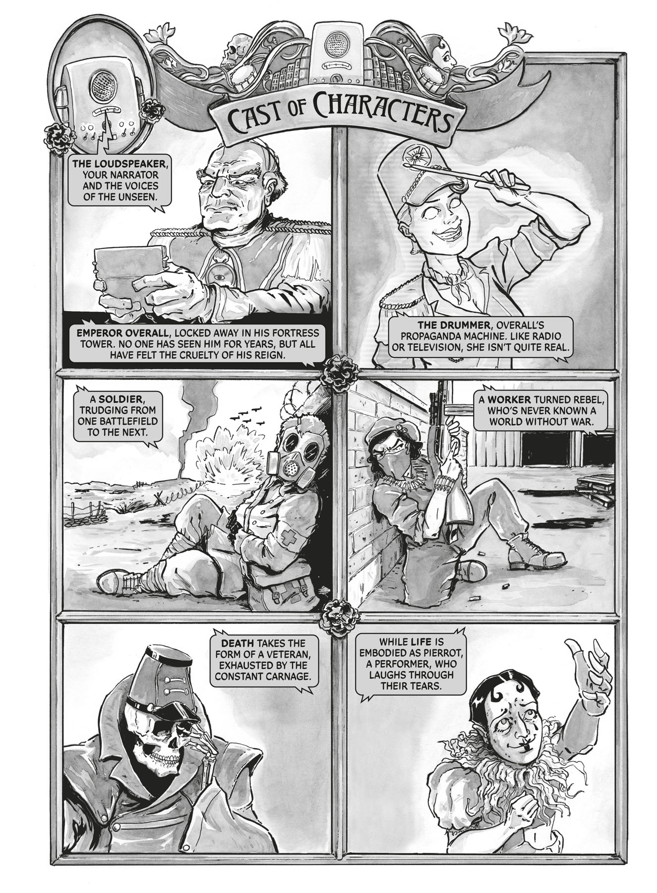 “Faced by the mechanized death on an industrial scale presided over by Emperor Overall of Atlantis, Harlequin and Death—‘life that can no longer laugh and death that can no longer cry’—are reduced to observers of a world ‘which has forgotten how to delight in life and die of death.’ When Overall declares a war of everyone against everyone, Death feels that he has been robbed of all dignity and refuses to serve the Emperor any longer.”