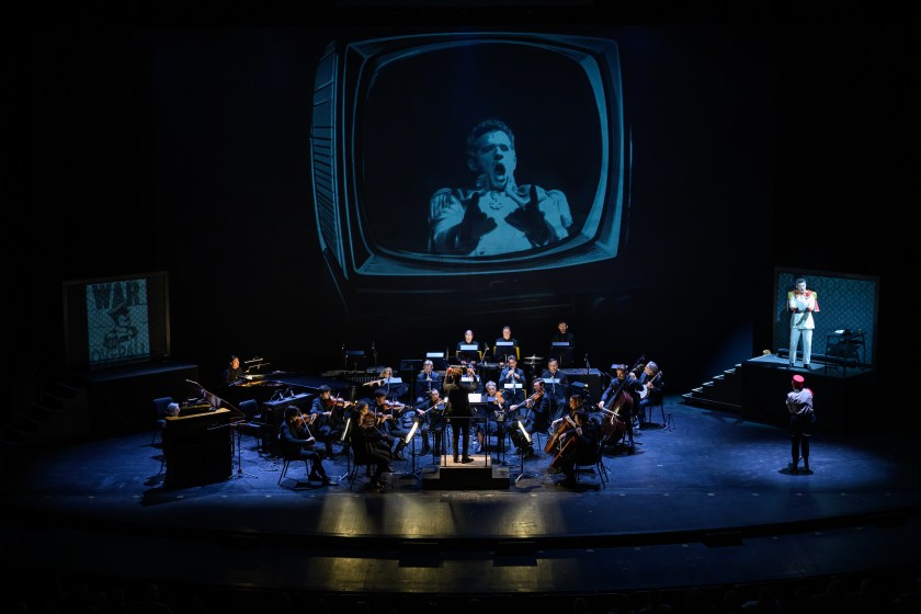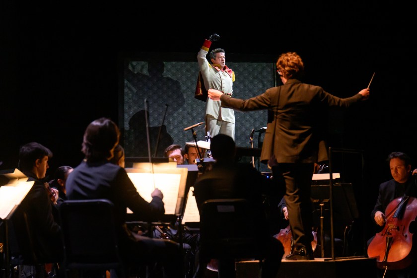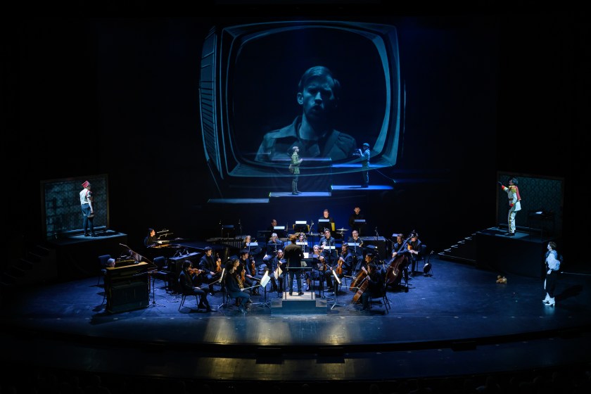 Lead image: Peter Kien, watercolor of Terezin, 1944, a place where art and music was made against the dark rise of the Holocaust. All photos from the Louisville Orchestra January 25, 2025, production of Der Kaiser von Atlantis by O’Neil Arnold.