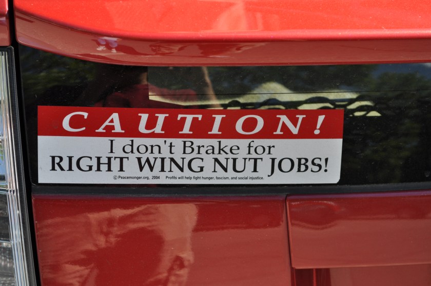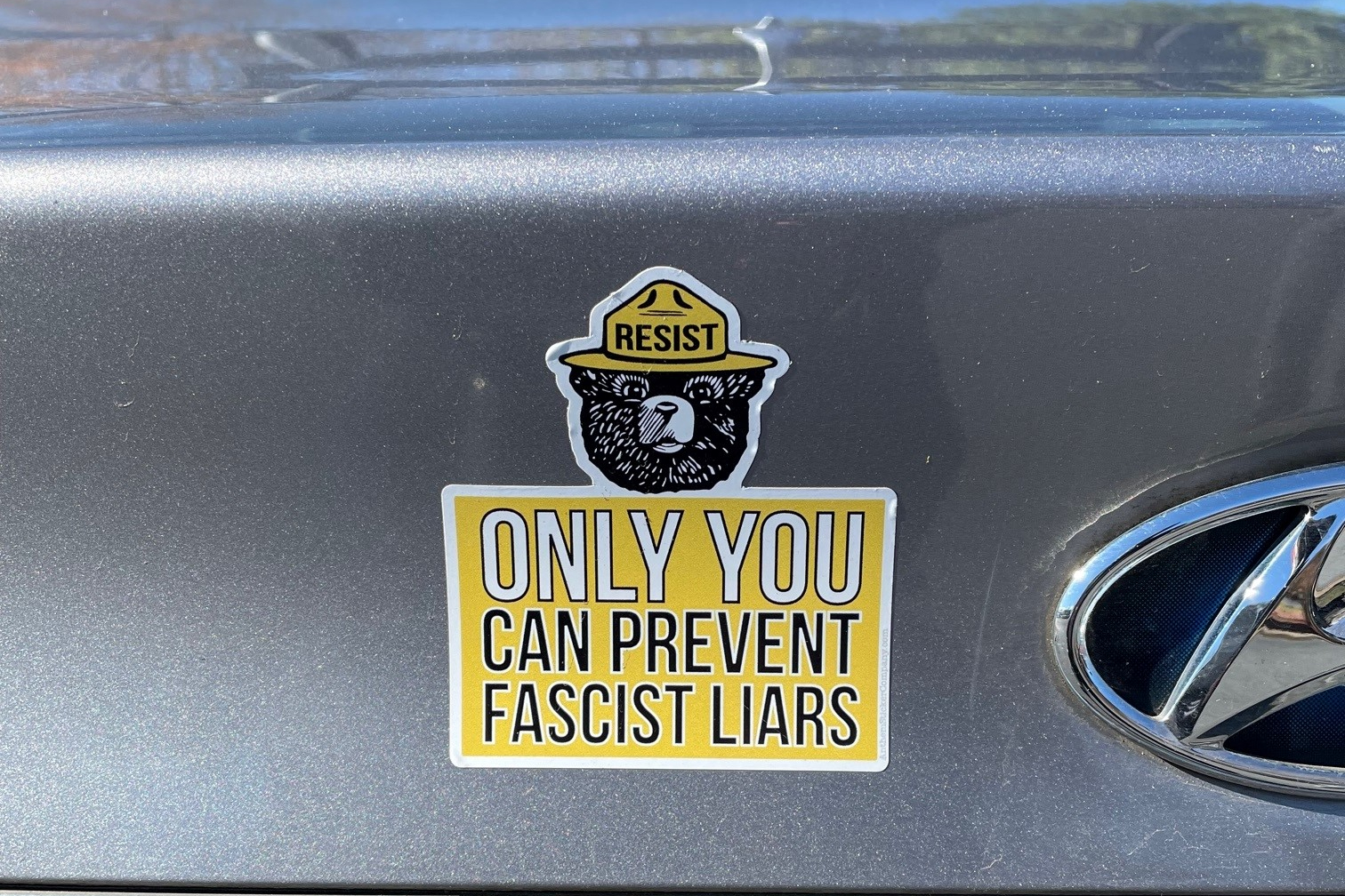 So pay attention out there. Smile. Seek the truth. Push back against fear. Work for justice (despite what this bumper sticker implies). And use your turn signal!