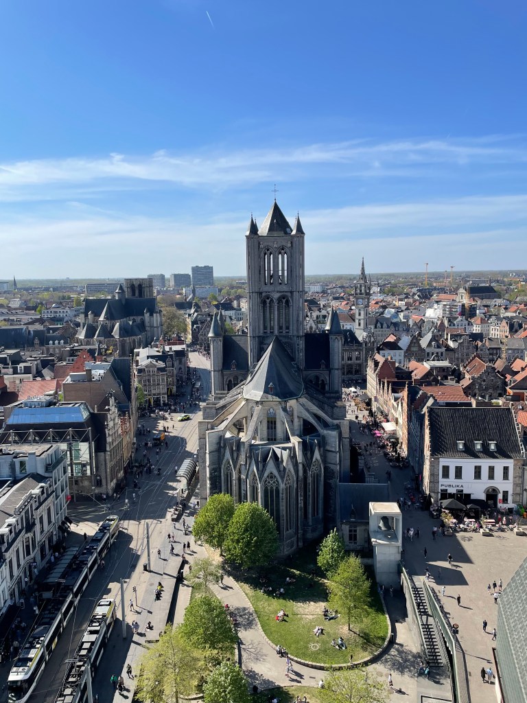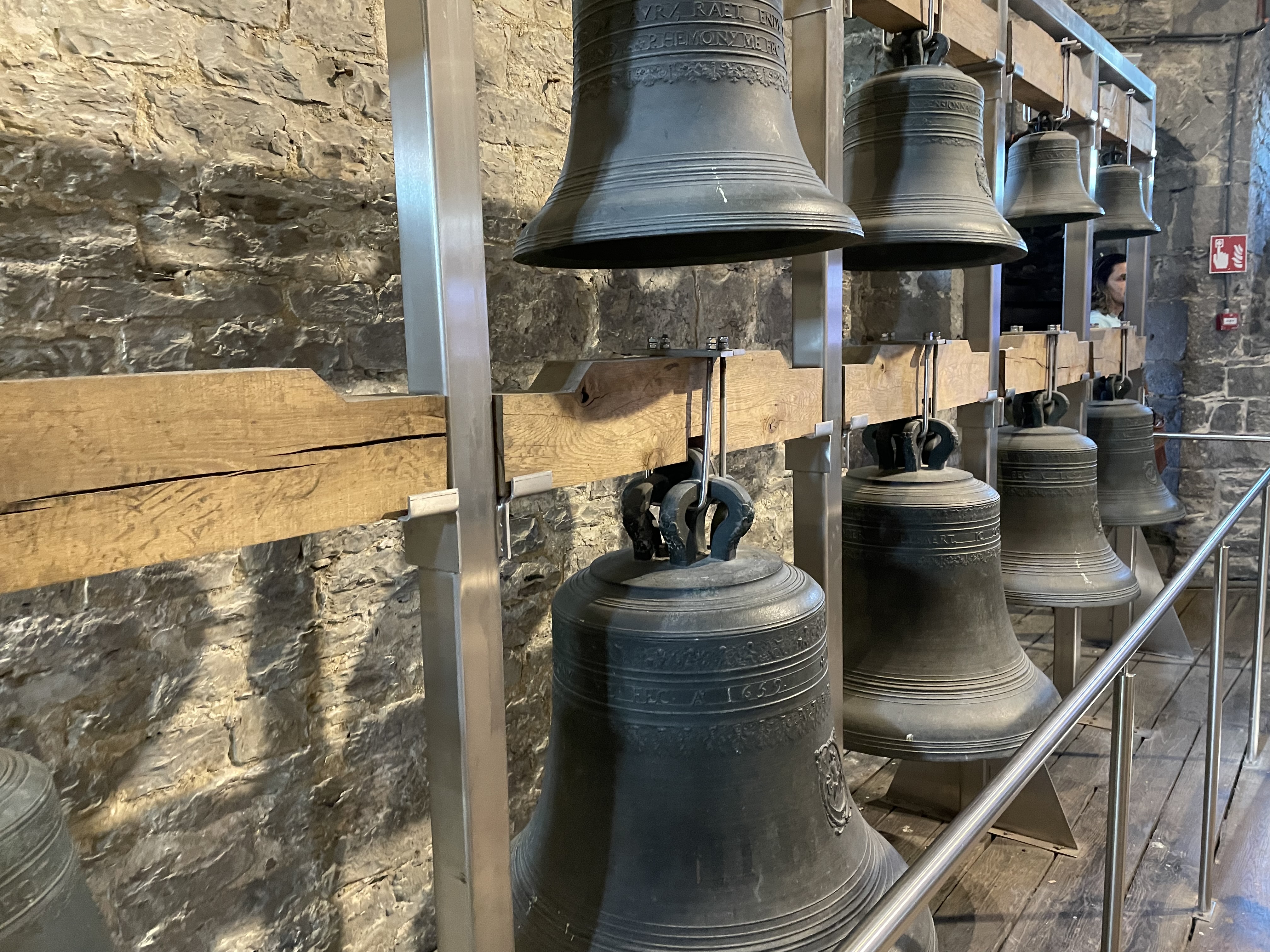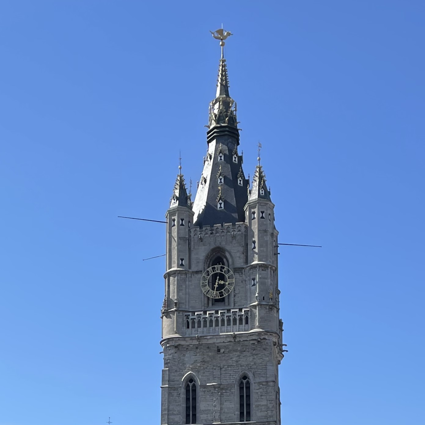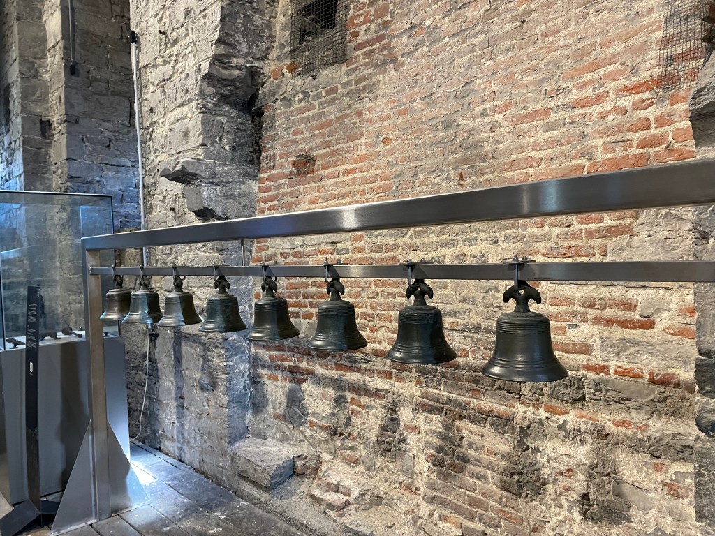 Construction of the Ghent belfry began in 1313 and after continuing intermittently through wars, plagues and political turmoil, the work reached completion in 1380. The uppermost parts of the building have been rebuilt several times, in part to accommodate the growing number of bells. I climbed to the top of the belfry while on our visit and had outstanding views of the city.