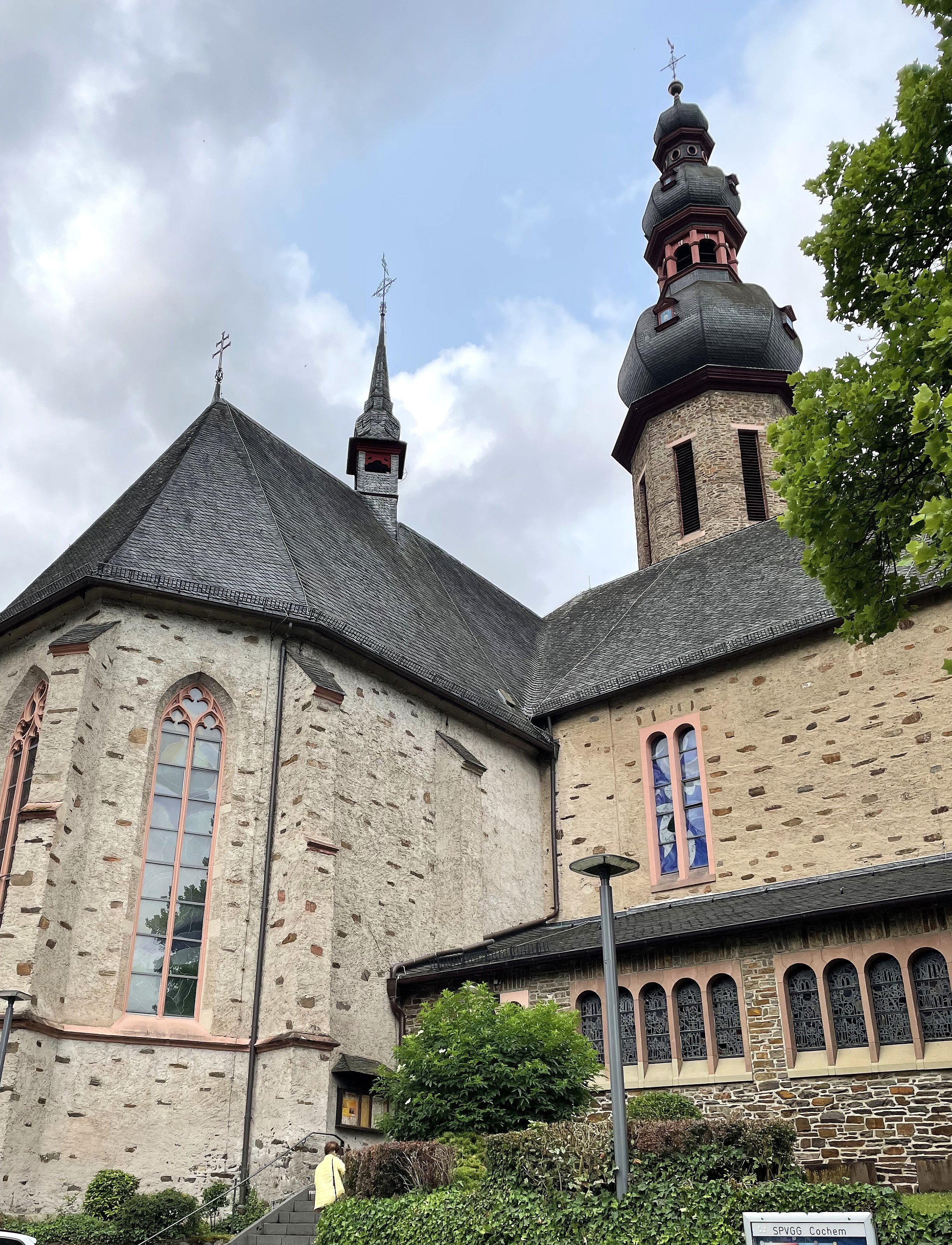 In Cochem, St. Martin’s is a major religious landmark. It has a long history and is dedicated to the city’s saint patron. The church, along with the rest of the city, was extensively bombed by the Allies during World War II. The church, including its iconic bell tower was rebuilt, and in an act of reconciliation eight stained-glass windows by British artist Graham Jones were installed in 2009. These gems look like watercolors and they reflect the colors of Cochem’s lush natural surroundings.