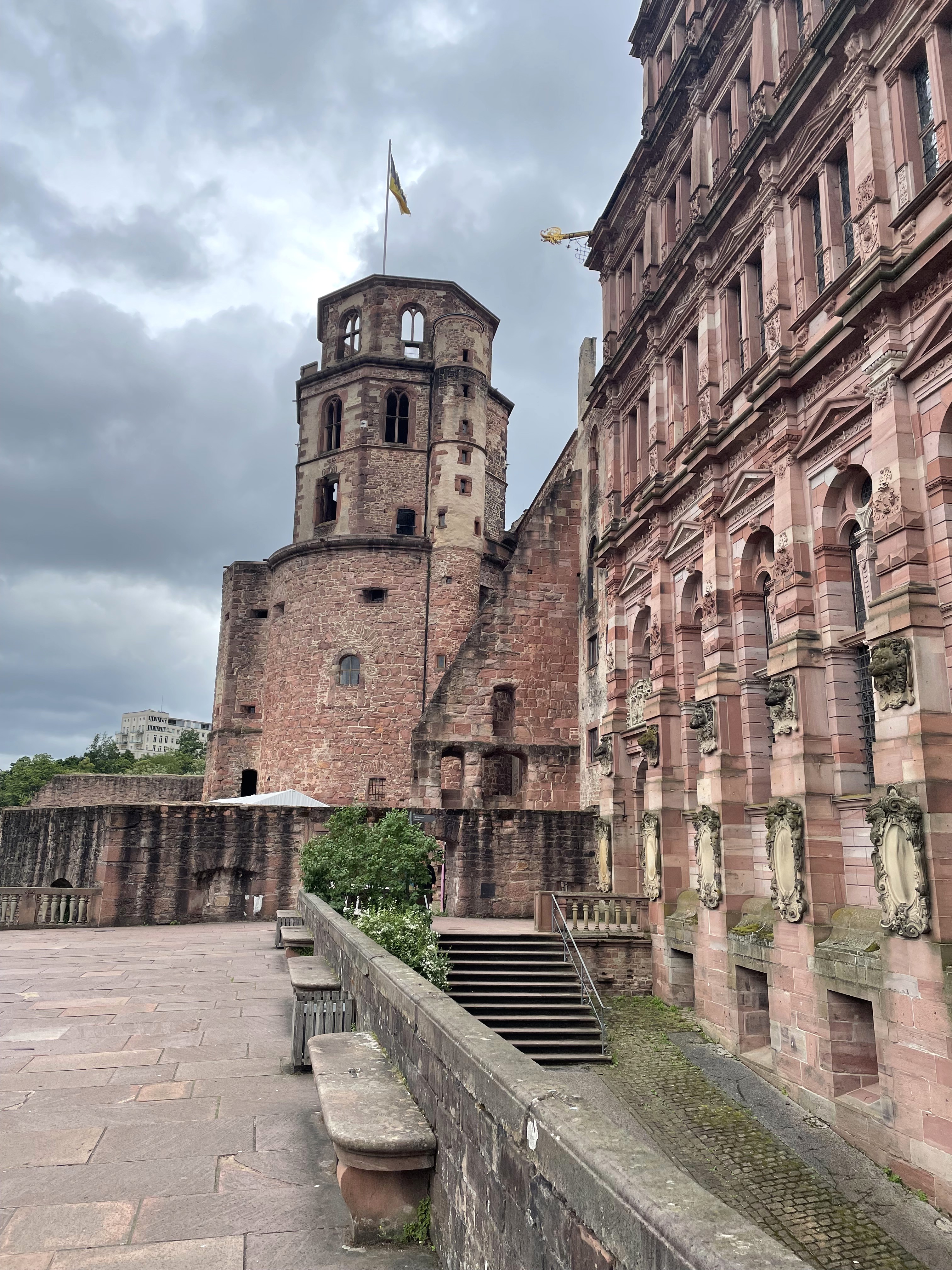 High above the city sits Heidelberg Castle, with a mixture of ruins and functioning structures and spaces.