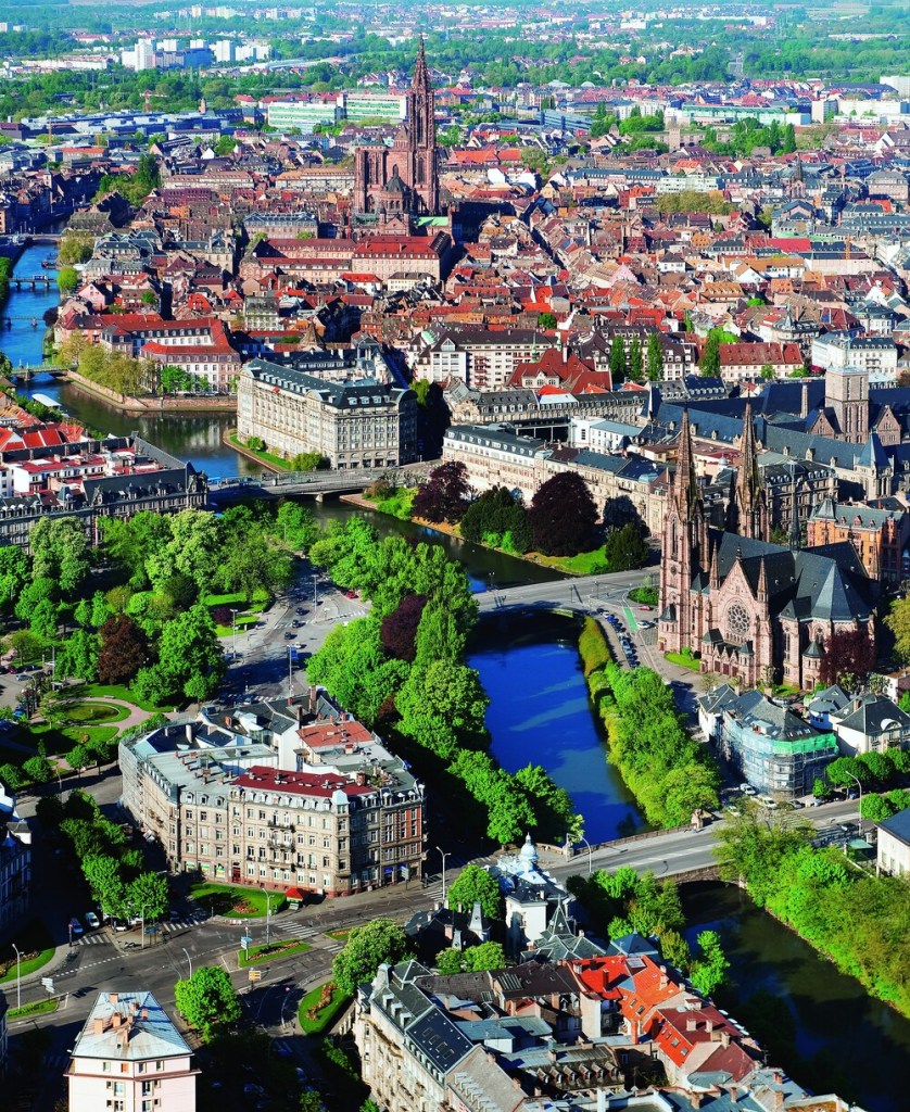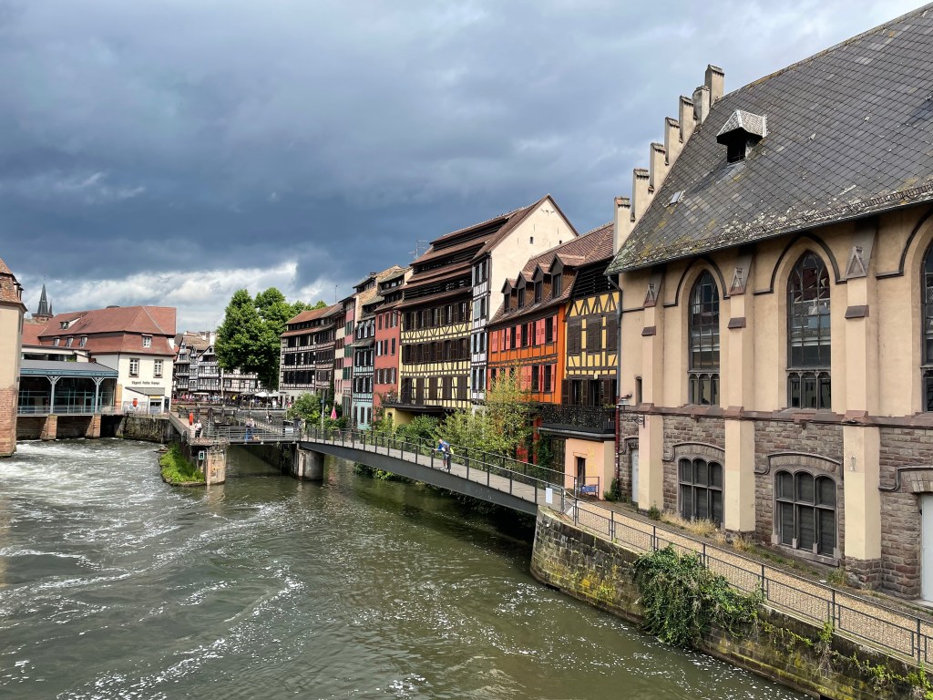 In Strasbourg one sees essentially two cities―the older Medieval city which grew around the cathedral and features building styles and urban development that grew organically over centuries―and then the new town, which was built from 1871-1918 by the Germans following the Franco-Prussian War. This part of Strasbourg reflects the principles of urban redesign for modern cities most famously featured in Paris.