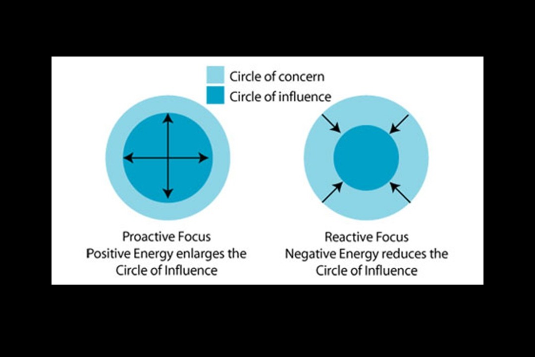 Those who focus on things they can influence radiate positive energy, causing their Circle of Influence to increase. Reactive people, however, focus on things they cannot control or influence with results that include blaming and accusing attitudes, reactive language, and increased feelings of victimization.