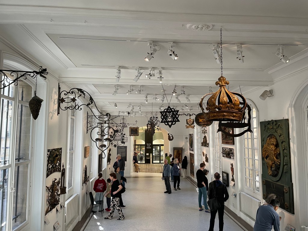Andrew encouraged us to visit Musée Carnavalet—Histoire de Paris (The Museum of the City of Paris), which we did on our last full day in the city. The Musée Carnavalet begins with a delightful opening exhibition of city street signs and includes in-depth and informative exhibits on such topics as 17th century Paris and the French Revolution. I was clearly taken by the historical signs and posters (from cheese shops to the response to the Charlie Hebdo shooting and the subsequent November 2015 attacks in the city.)
