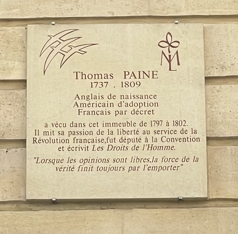 While in Paris this month we chanced upon the building that Thomas Paine, the great American patriot, had called home during his years in the city. Paine’s Common Sense has long been recognized as a key work in changing the hearts and minds of the people of the United Colonies into citizens of what Paine was the first to characterize as the United States. Similarly, his Rights of Man helped shape the French Revolution and—although it would take more than a century—inspire constitutional reform in Great Britain and foreshadow Franklin Roosevelt’s New Deal.