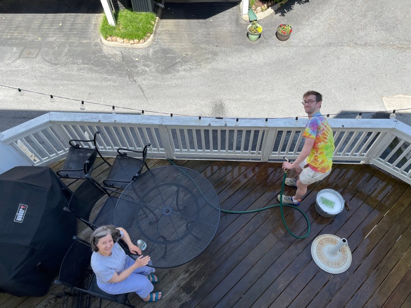 Candice, Andrew, and I spent one weekend in May engaged in the annual “cleaning the outside of the house” project, which I captured in this picture from our third-floor bedroom.