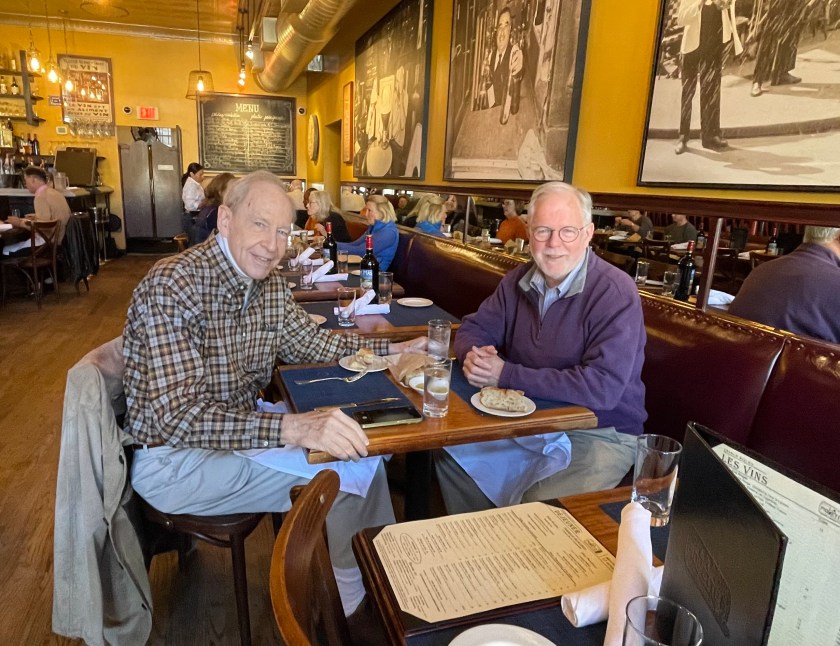 And the French vibe continued as we returned home. One of the joys of retirement is the opportunity to take leisurely lunches with dear friends. Here I am in our local French bistro La Piquette chatting with George Farr, one of the great gentlemen of DC and one of my favorite people.