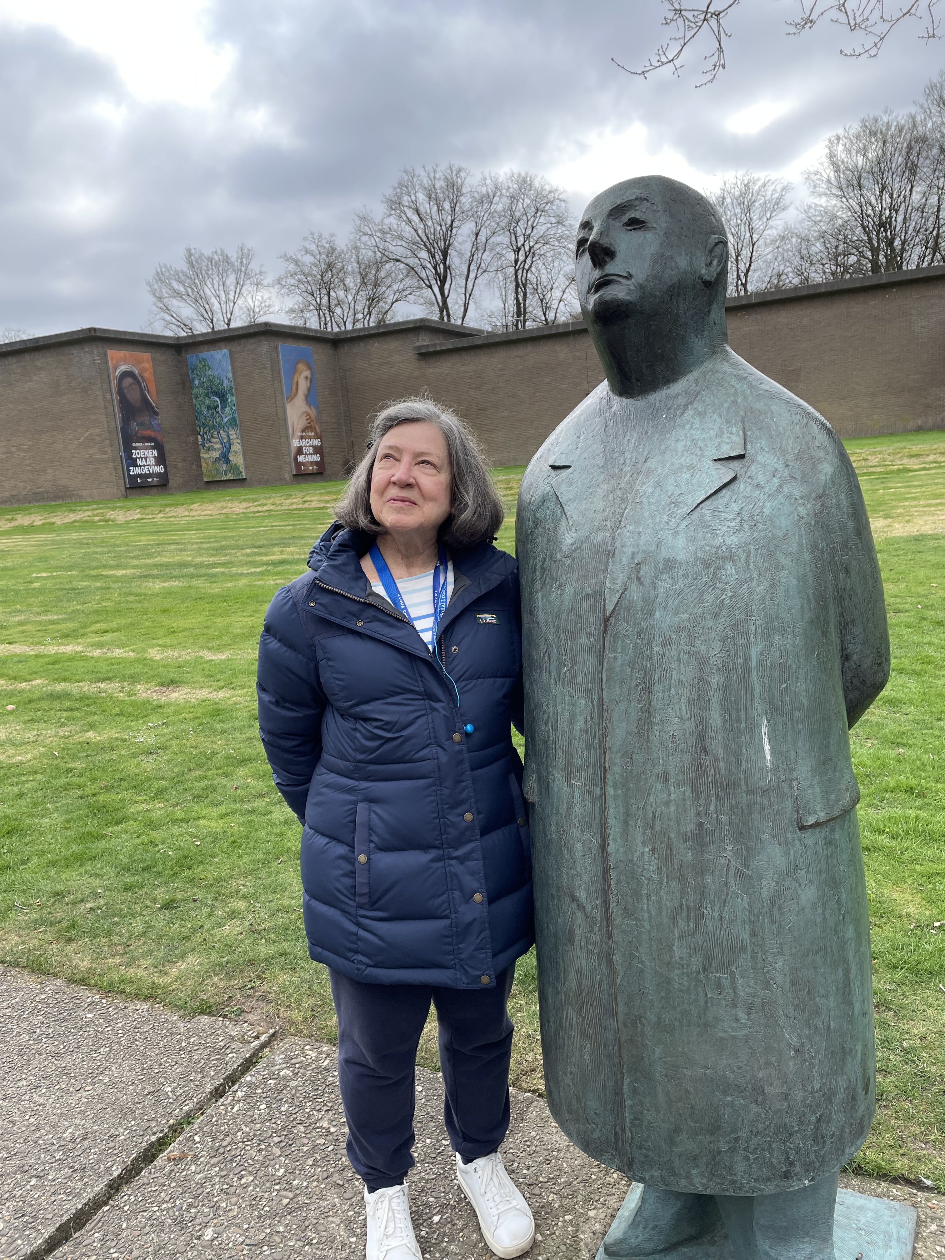 Candice joins Mister Jacques in his spot at the entrance to the Kröller-Müller Museum, as they gaze at the artwork.