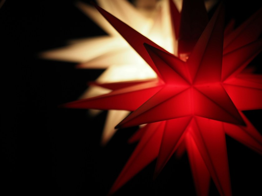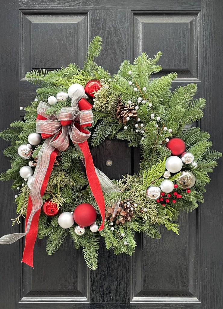 Photo of Christmas Stars by Niklas Ohlrogge (niamoh.de) on Unsplash. Photo by DJB of the wreath on the Brown’s front door, created by Park Florist in Takoma Park.