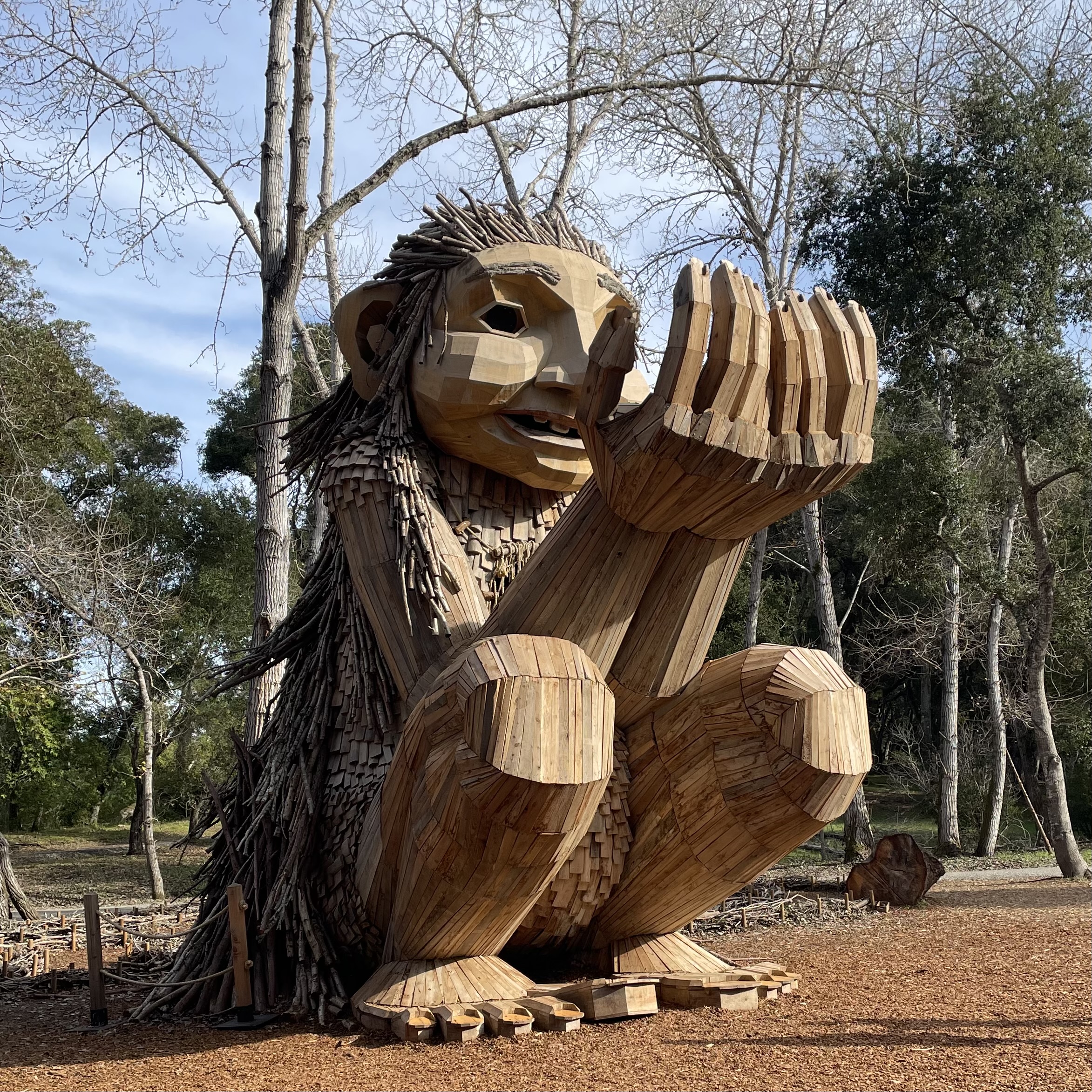 In our weekend of grace and wonder, we were delighted to find that artist and activist Thomas Dambo‘s brand new troll sculpture Rose Wonders now has a permanent home in the Filoli Redwoods. Built from reclaimed materials, Rose delighted visitors the day of our visit. We joined guests of all ages who were mesmerized by the size, detailing, and—especially—the inherent joy found in this work of art.