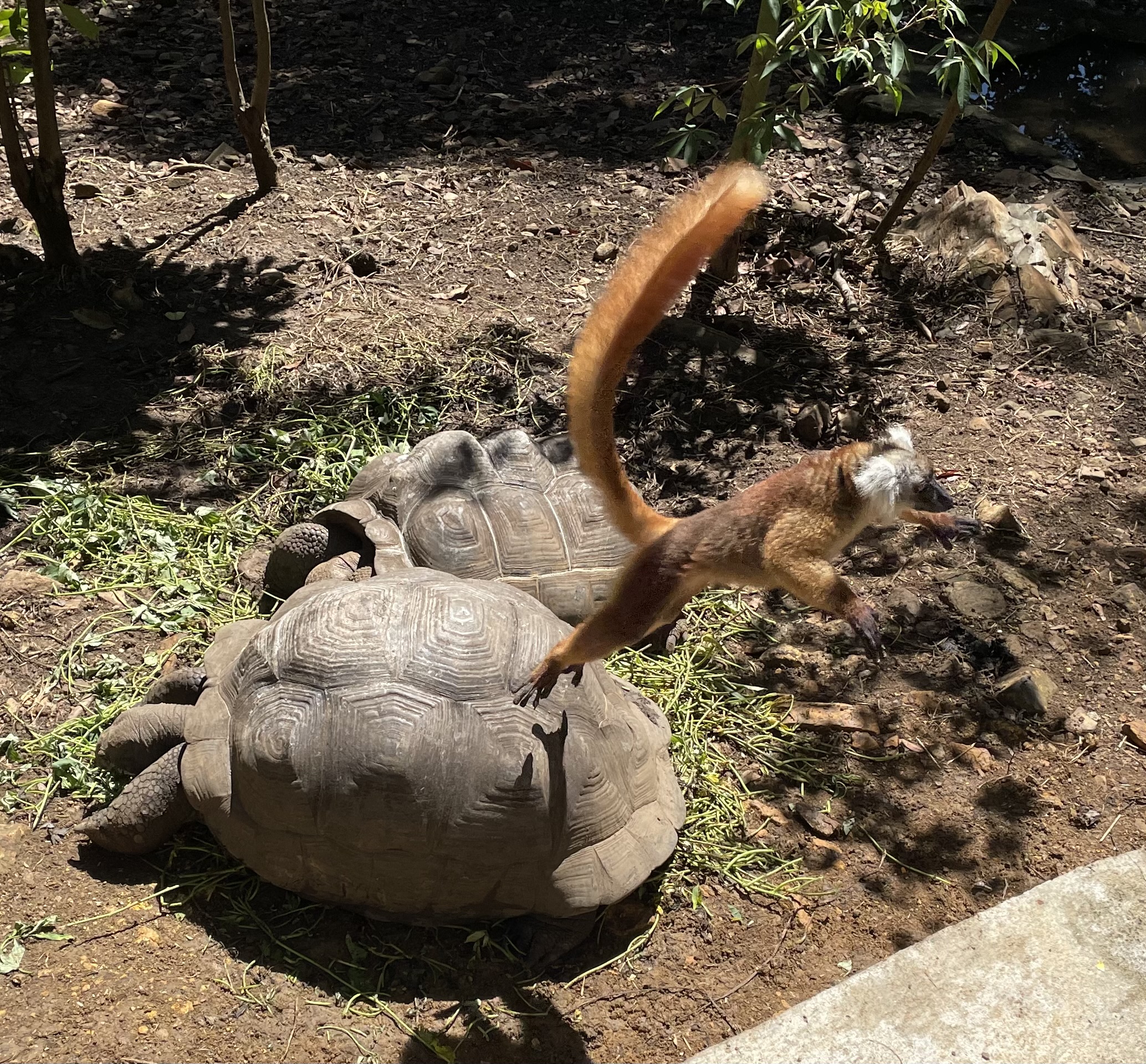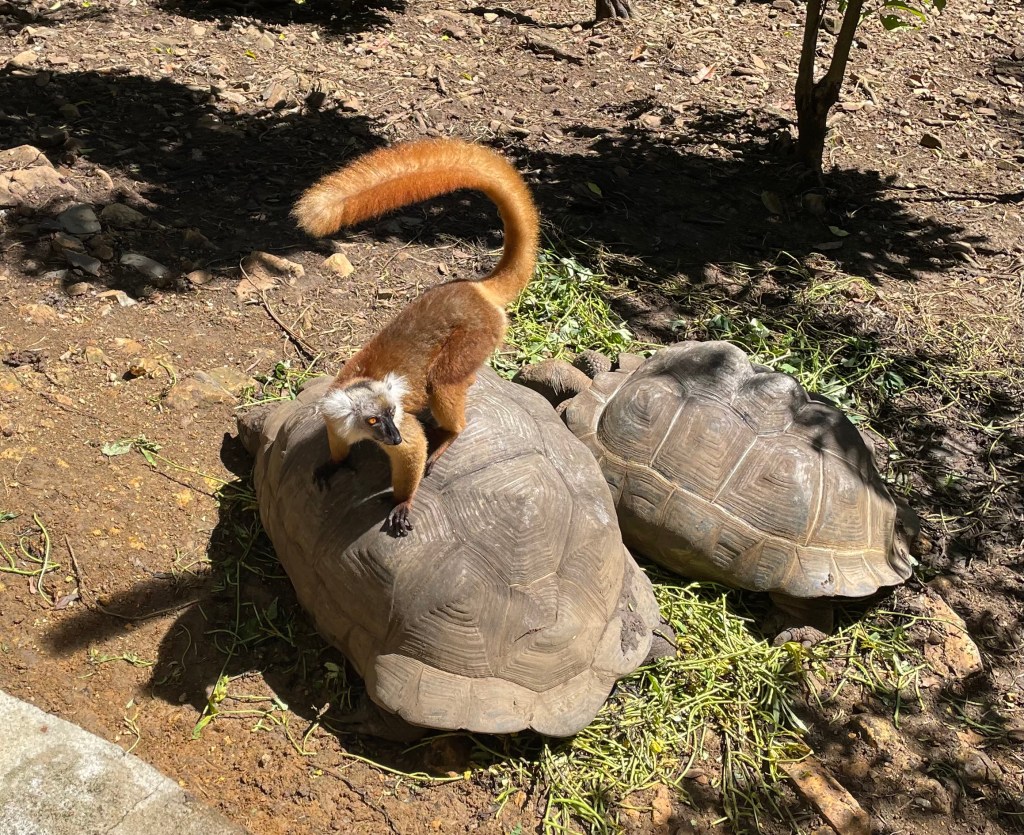 The preserve also included giant tortoises, and it was great to see the lemurs having fun leaping from back to back on these unmoved ancient animals.