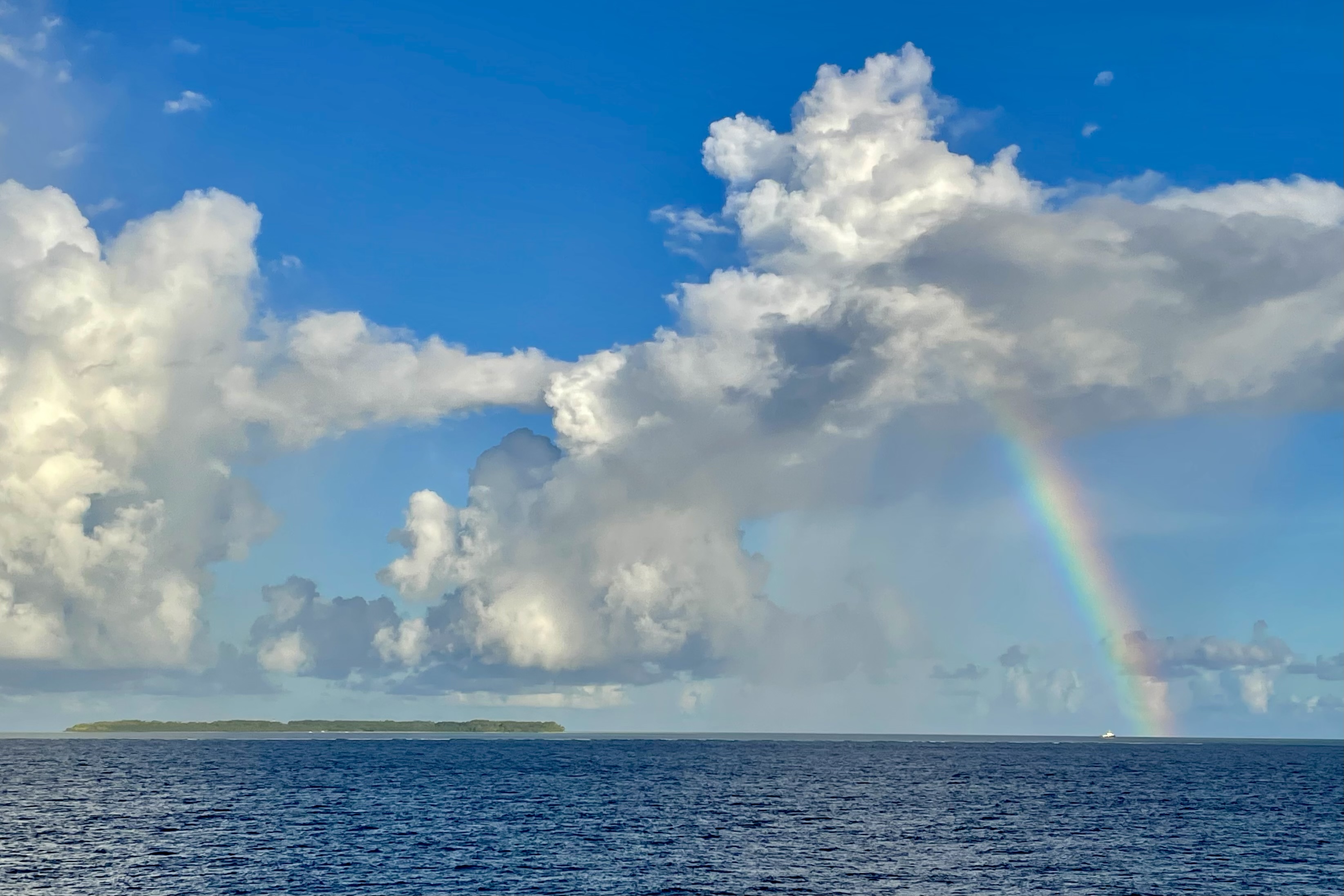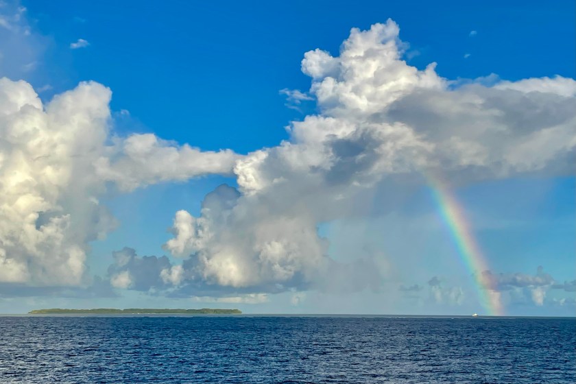 As we entered March we made our first stop in the remote Outer Islands of the Seychelles. Both of these rarely visited islands have diverse marine life without human intervention. Since this is in the tropics, it rains every day, but the rainbows over the Indian Ocean are nice tradeoffs.